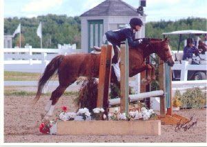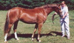 13.1 1/2 HH, 1992 Chestnut mare, TB x Welsh x British Riding Pony. Since 2000 This pony has been Champion or Reserve in the 'A' division 32 times! First in stakes class RAWF 2001.